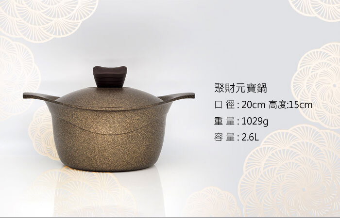 4. 🍲高度:15cm 重量:1029g 材質:複合鈦金屬、金玉石貼面