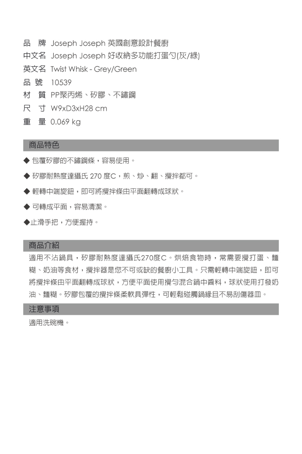 中文名:Joseph Joseph 好收納多功能打蛋勺(灰/綠)