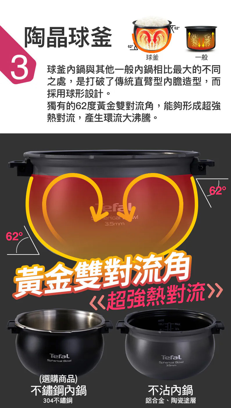 ■ 雙62°黃金對流角,煮食溫度更均勻