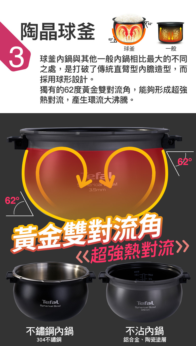 ■ 3.5mm厚球釜內鍋,導熱更加迅速