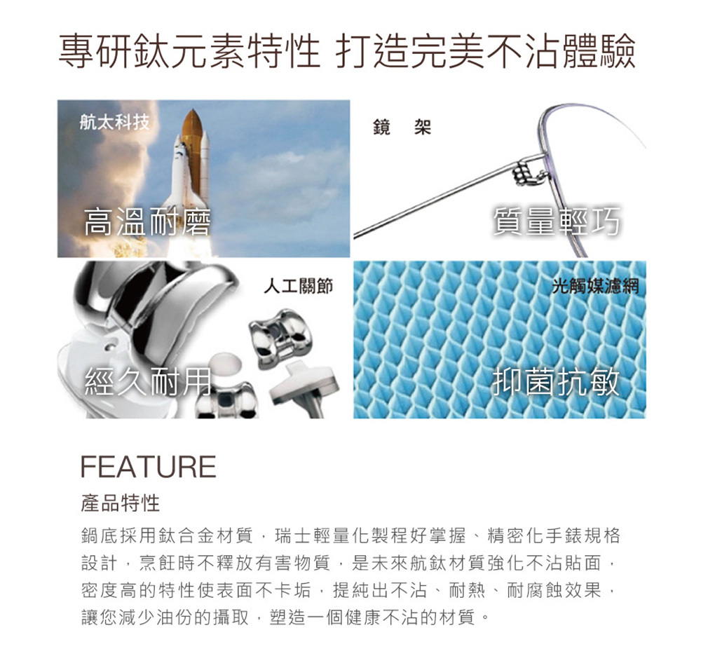 ◆鈦合金材質鍋底,輕量掌握