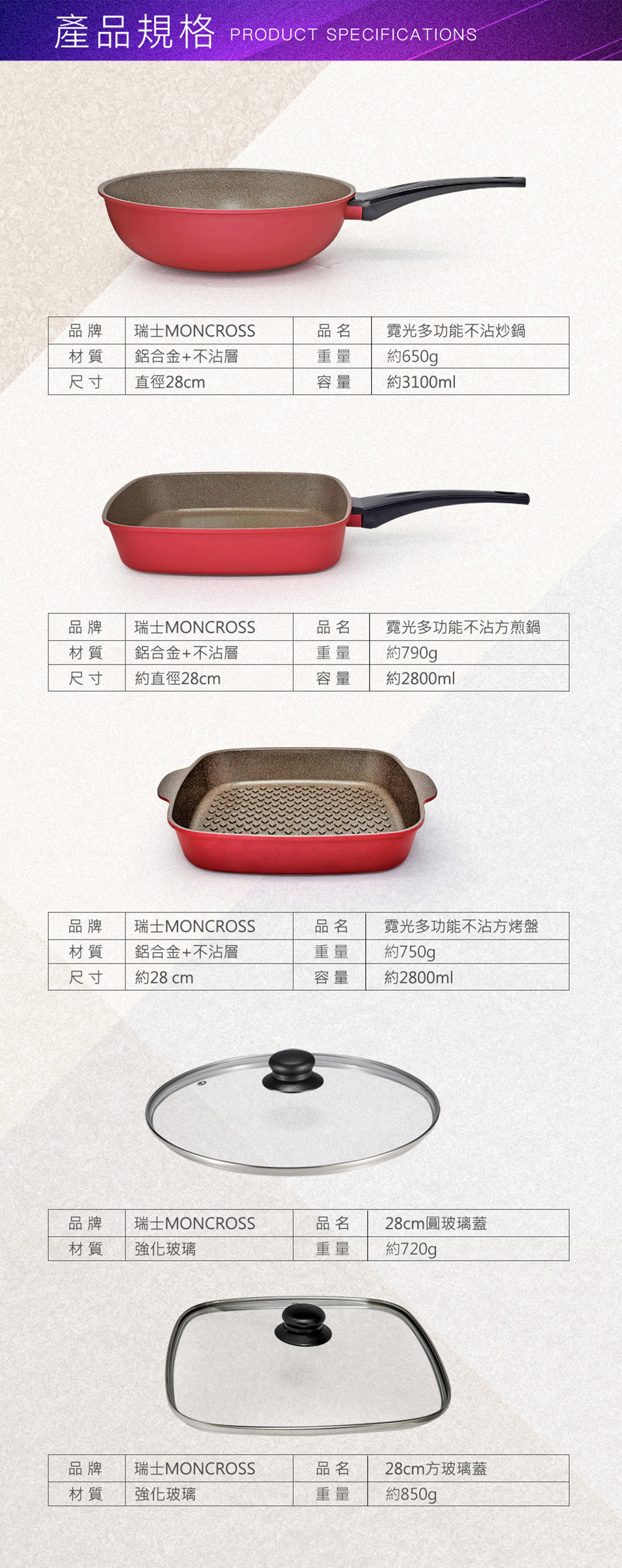 品名:霓光多功能不沾方煎鍋