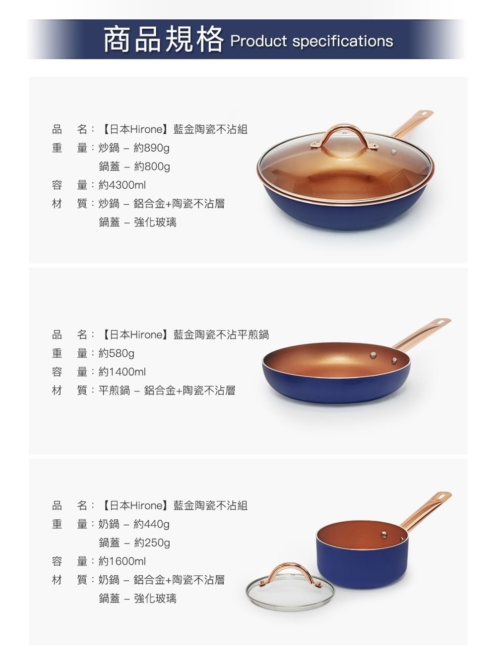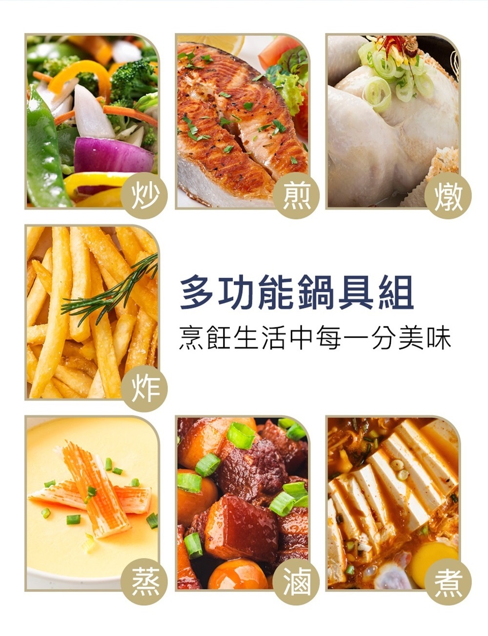 內容物:炒鍋+炒鍋鍋蓋+平底鍋+奶鍋+奶鍋鍋蓋