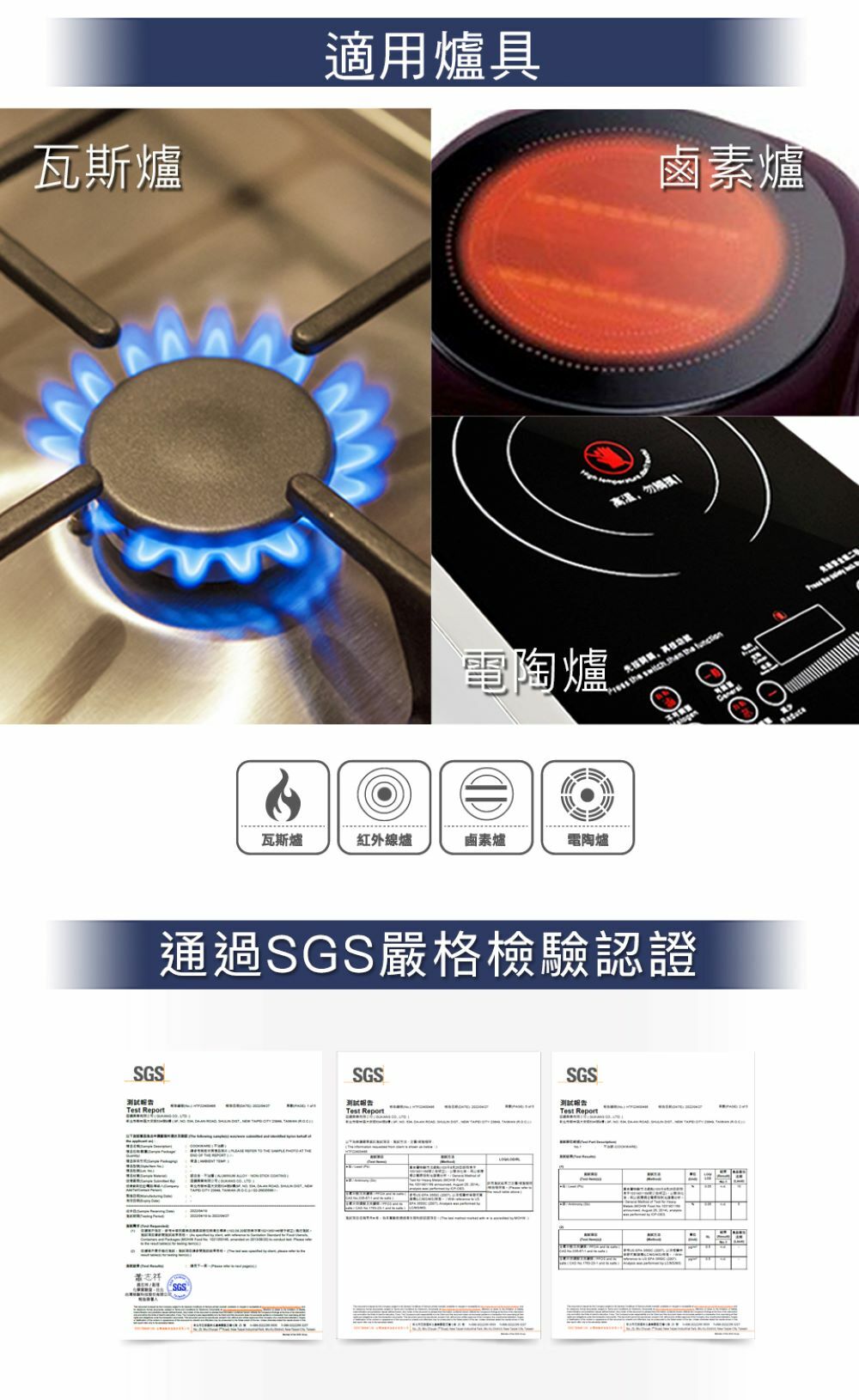 適用於:瓦斯爐、電陶爐、紅外線爐 (本產品不適用電磁爐)