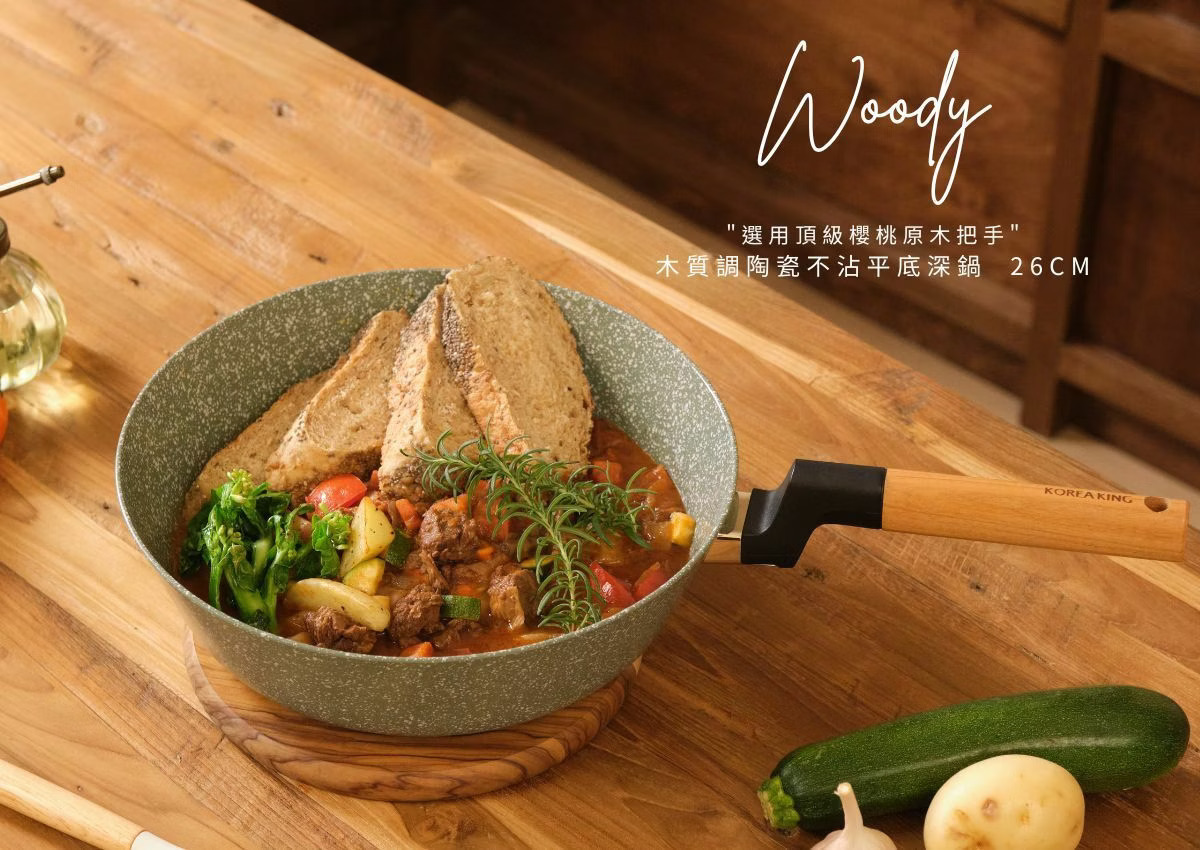 Woody 木質調磨石陶瓷-平底深鍋 26cm