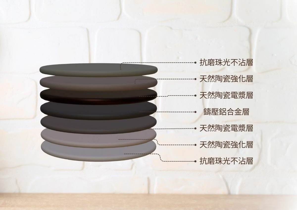陶瓷塗層使用噴塗或鑄熔於鍋具,故可能形成氣孔或針孔狀凹凸,此情形為正常現象並非瑕疵,可正常安心使用。
