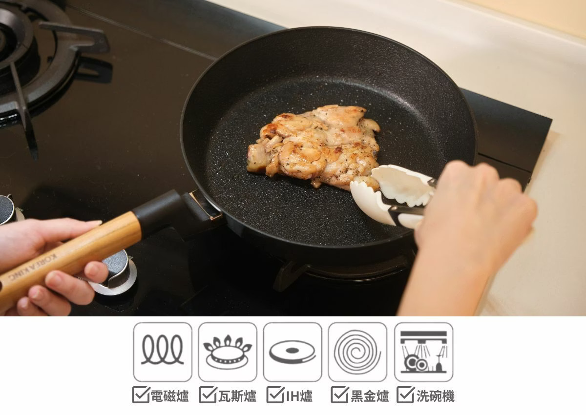 A:適用IH爐、瓦斯爐、電磁爐、黑晶爐等各種爐具&洗碗機(不適用微波爐、水波爐、烤箱),翻炒料理通通一鍋搞定.