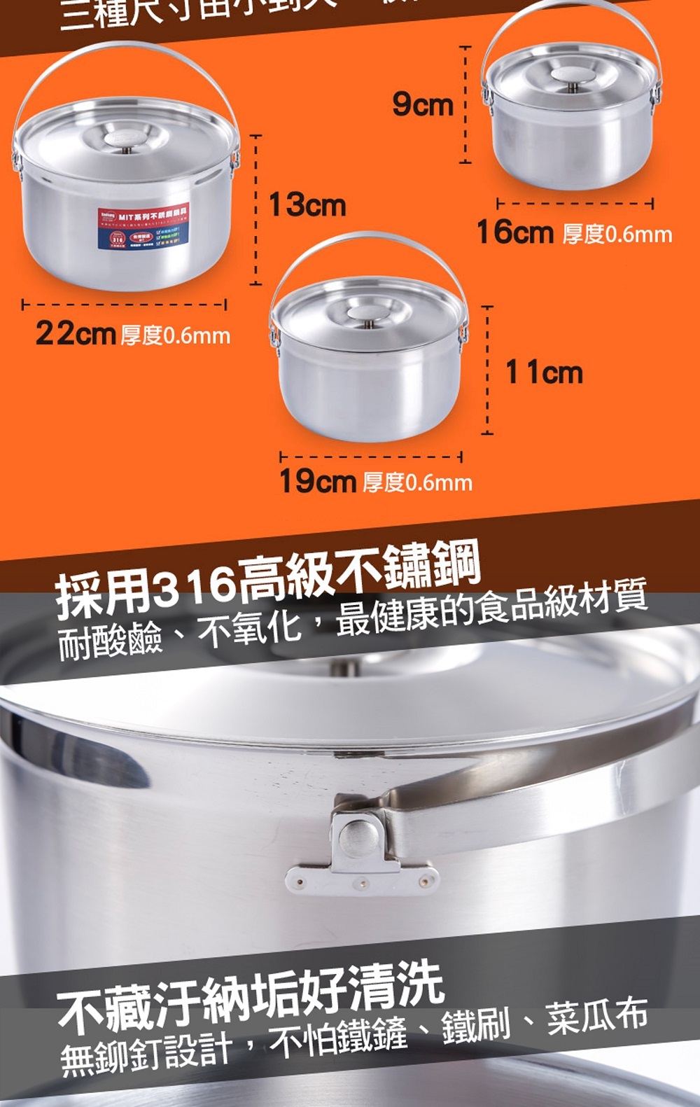 品名︰Dashiang 不鏽鋼三件式提鍋