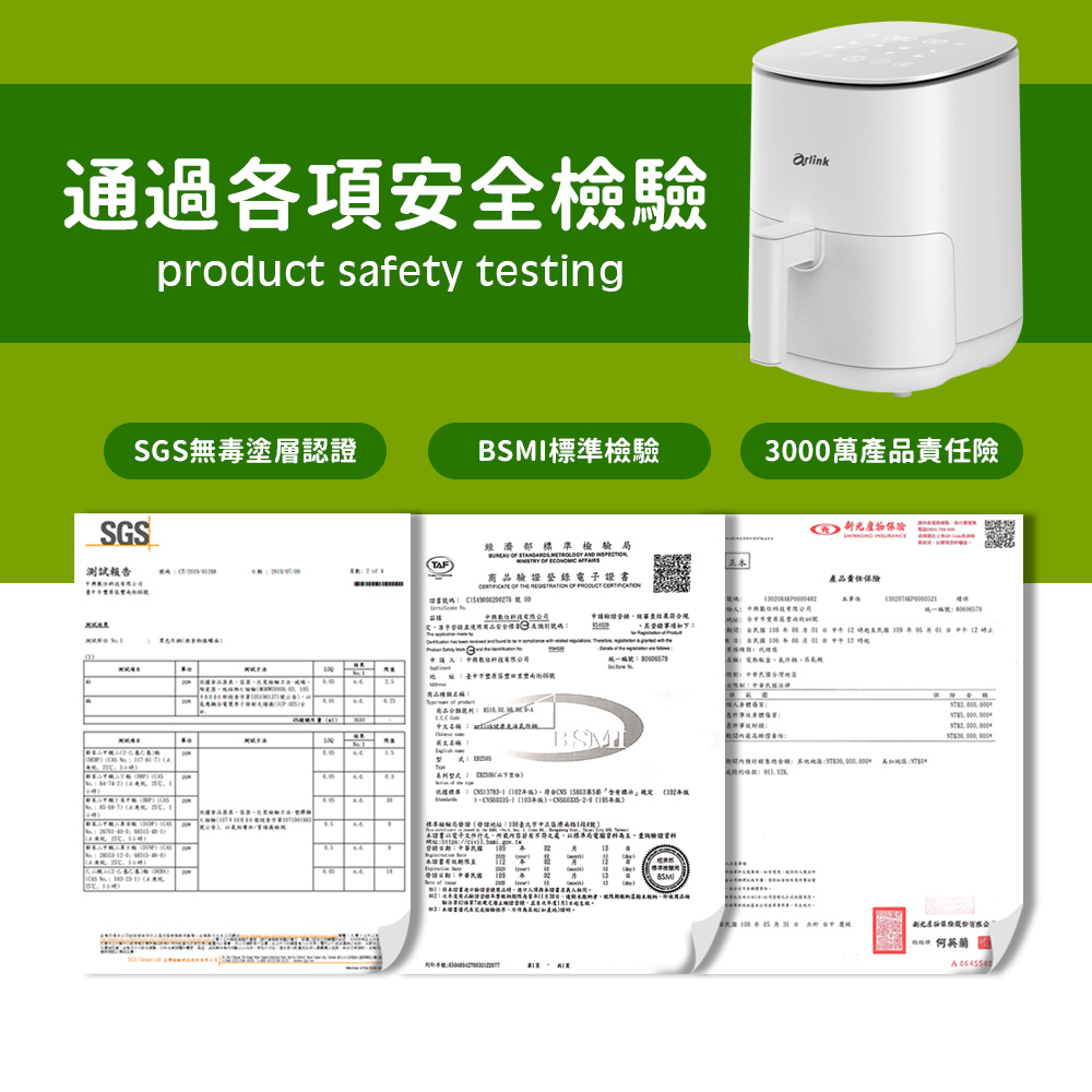 ● 全機皆通過BSMI國家檢驗 x SGS無毒檢驗