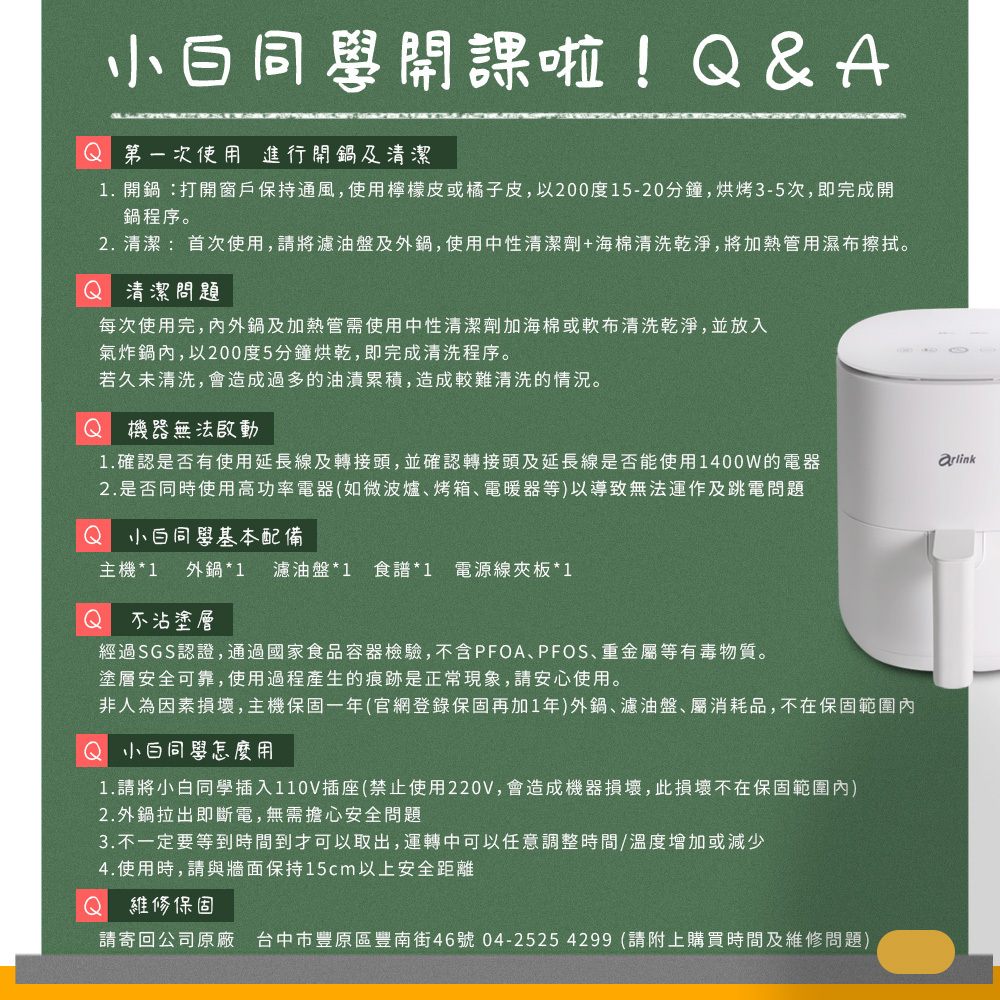 配件:濾油盤x1、食譜x1、電源線夾板x1、保固卡x1