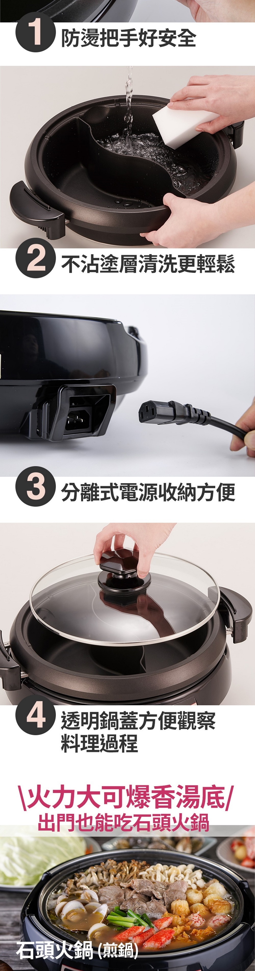 鴛鴦鍋、煎鍋可直接水洗,簡單好清潔。