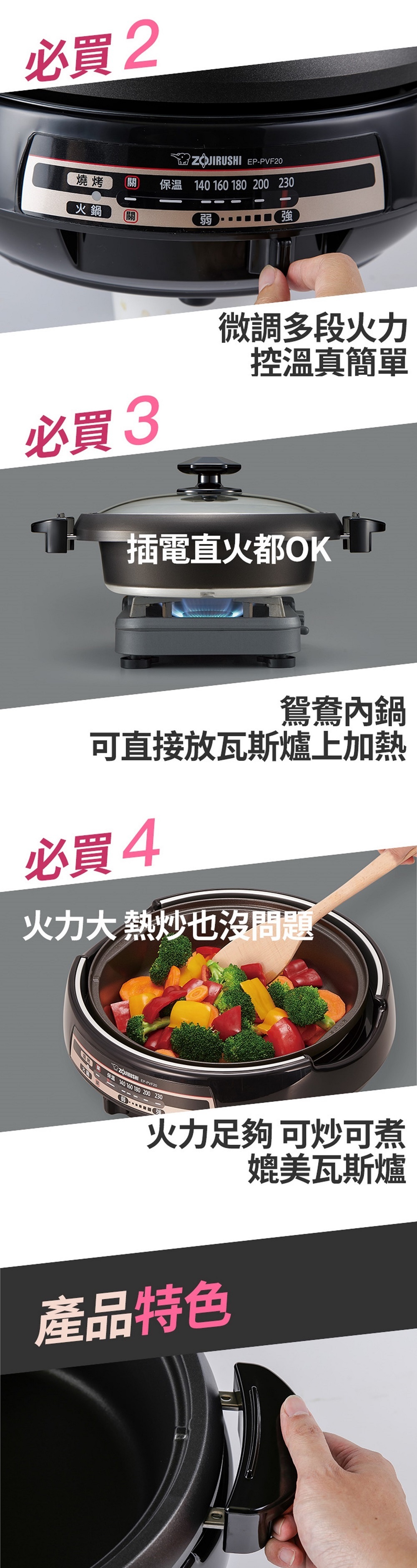 溫度調節範圍:保溫~230℃(使用煎鍋時)