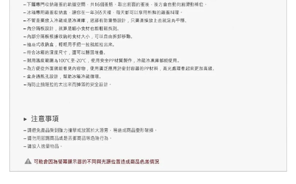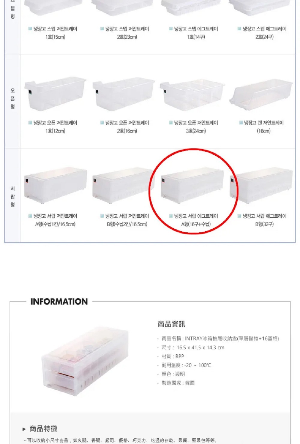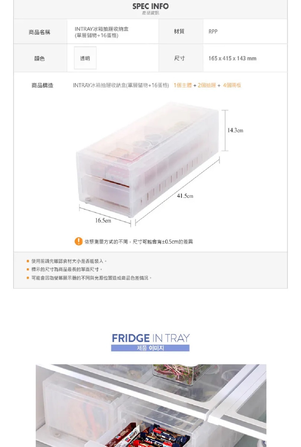 商品名稱:INTRAY冰箱抽屜式收納盒(單層+16蛋格)