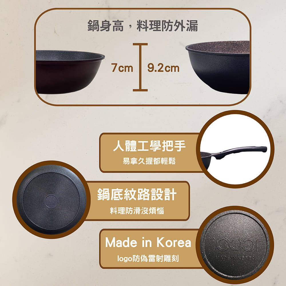 ● 輕・厚・耐磨,三效合一的不沾炒鍋