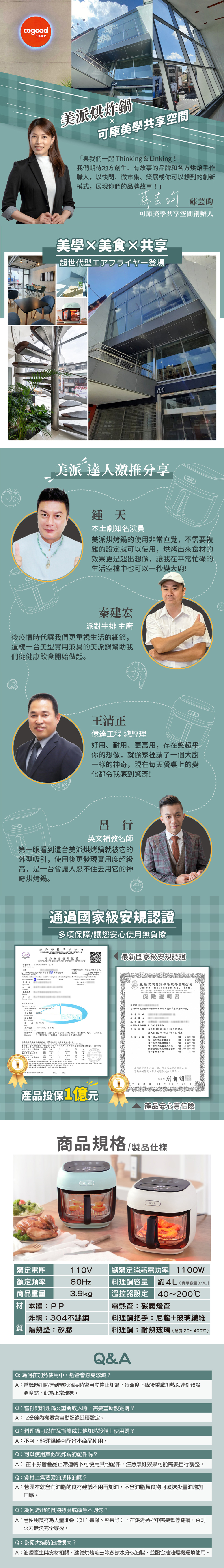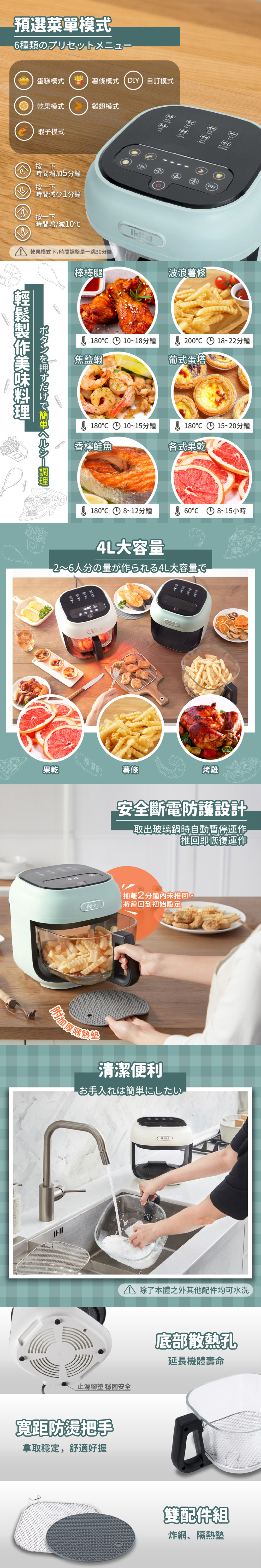 ●4公升大容量,可烤全雞,滿足全家使用。