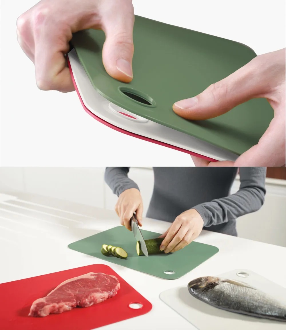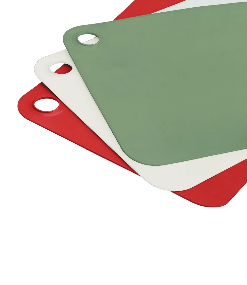 ■用不同顏色的砧板區隔不同種類的食材,清楚分類不混淆,讓砧板保持衛生,料理更健康