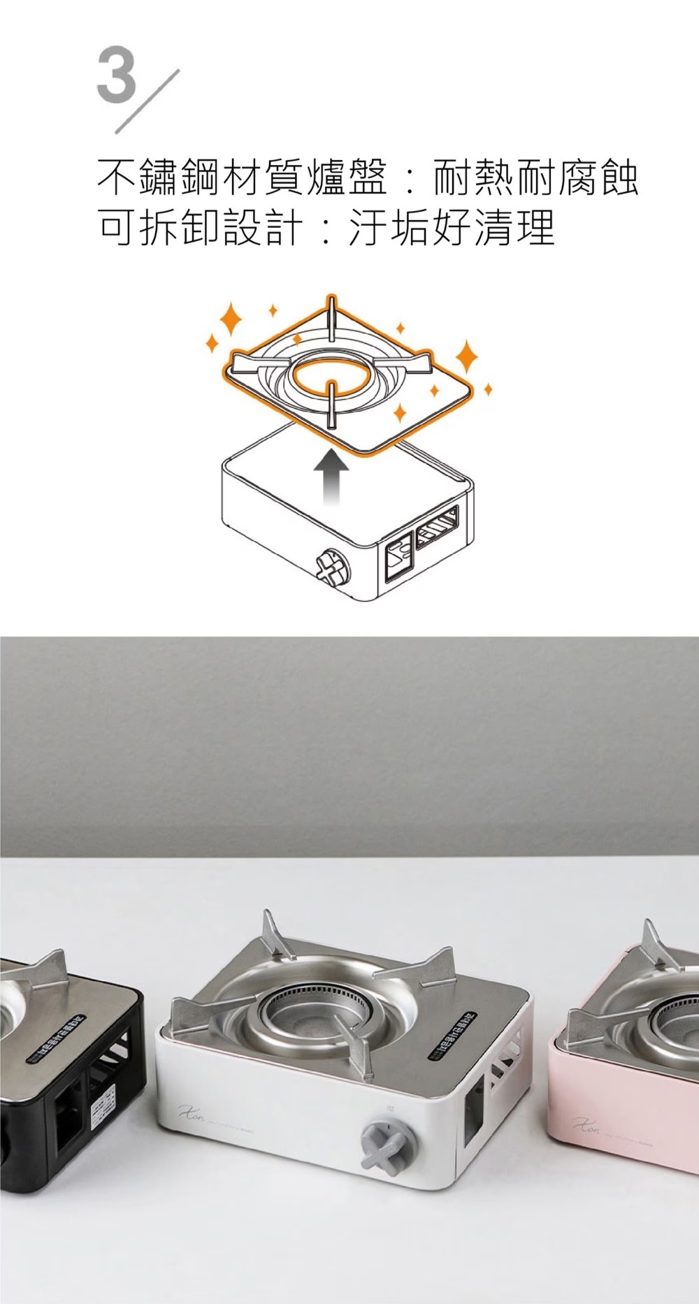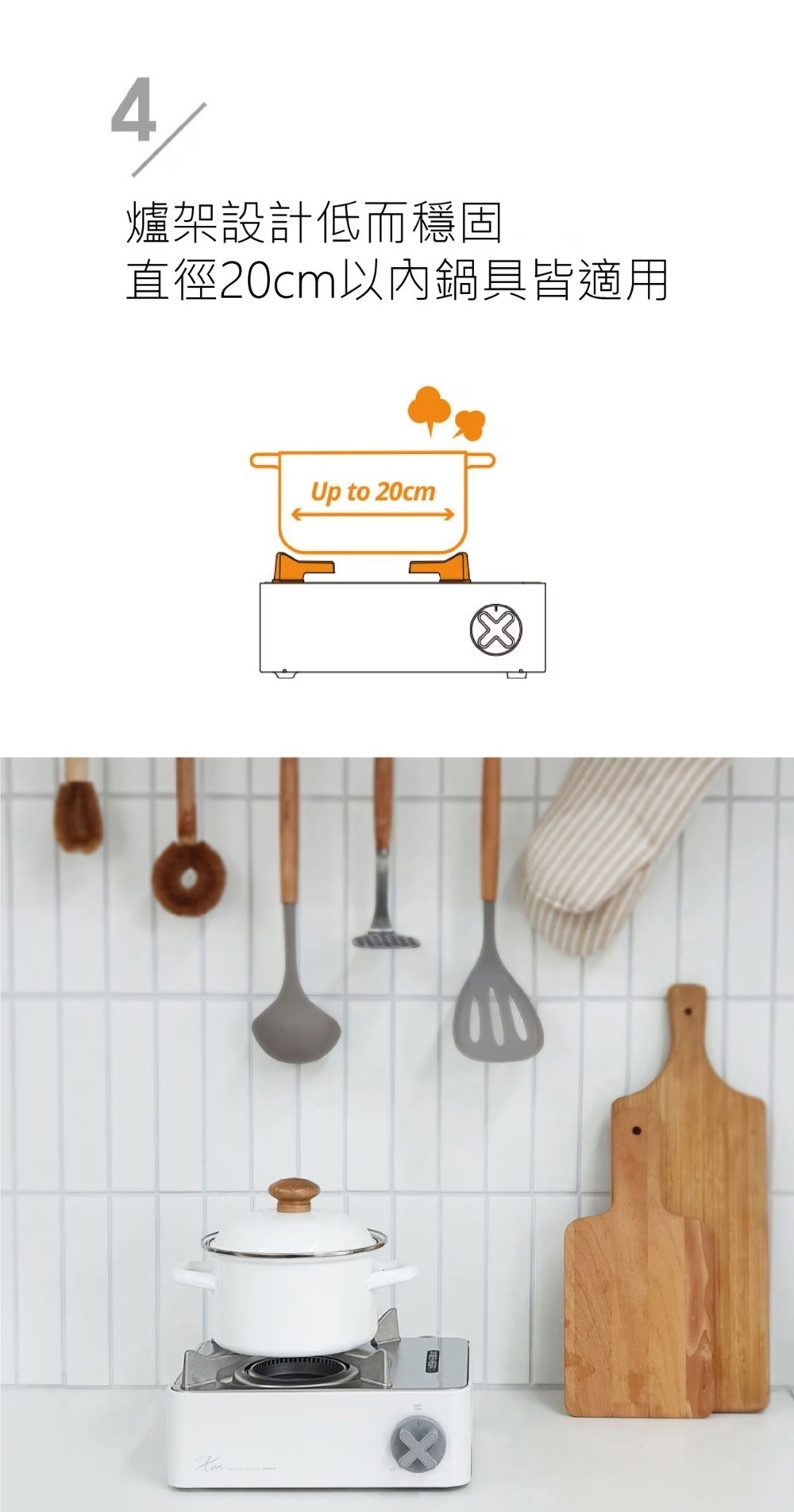 ●四腳低爐架設計,穩固不易滑動