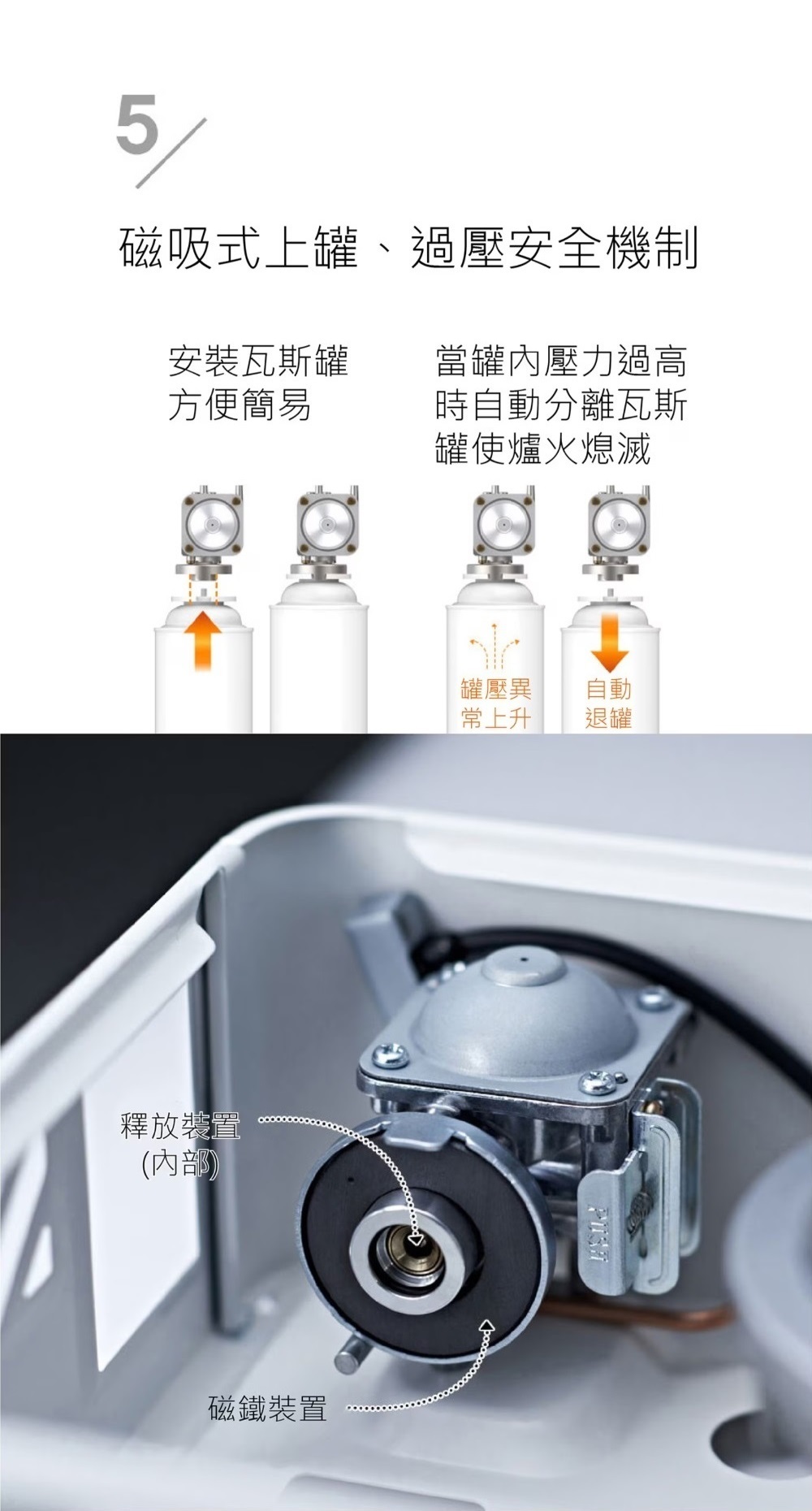 ●磁吸式上罐搭配內建過壓安全設計