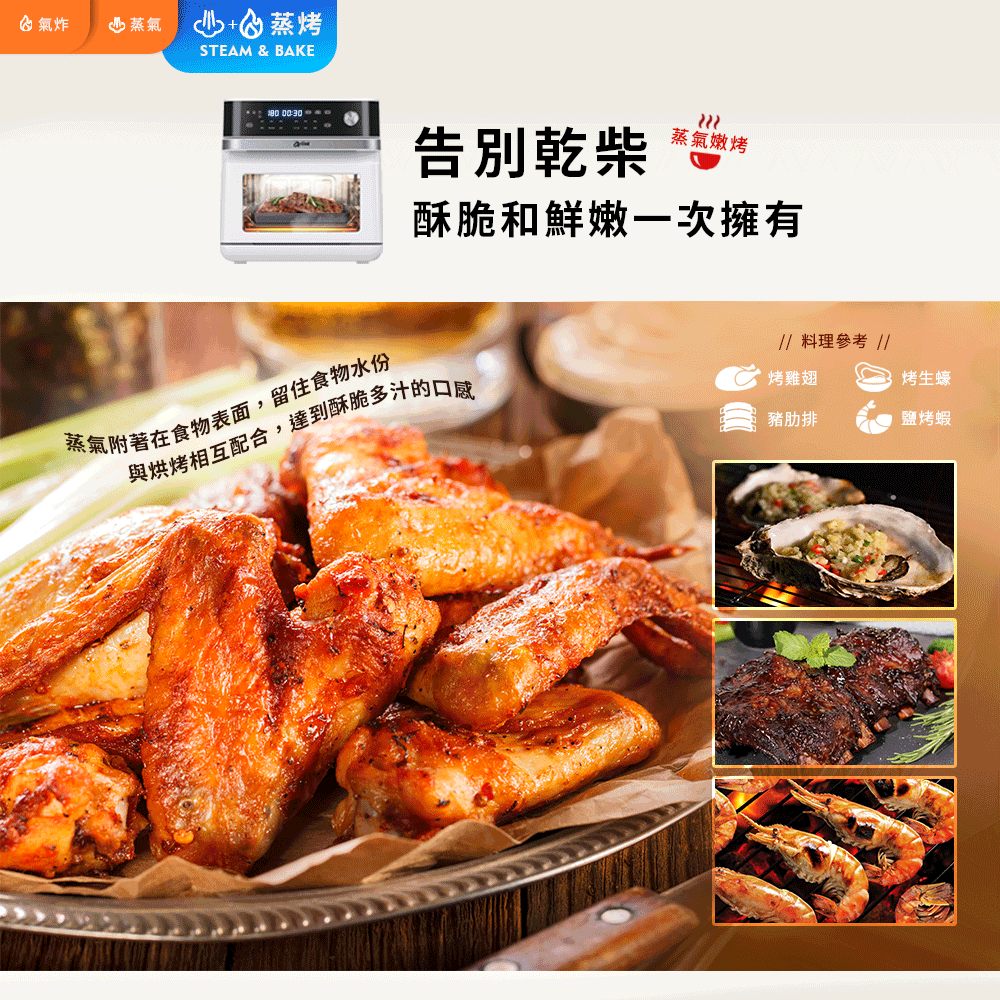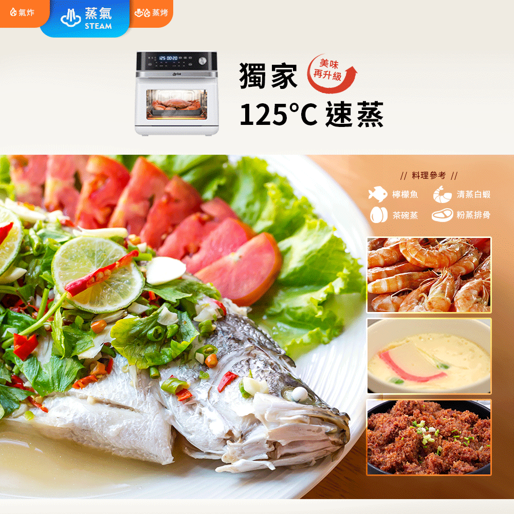 ● 獨家蒸氣嫩烤、125度恆溫速蒸,鎖住食材鮮度味道更升級