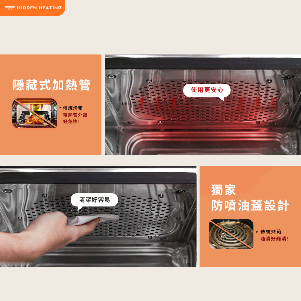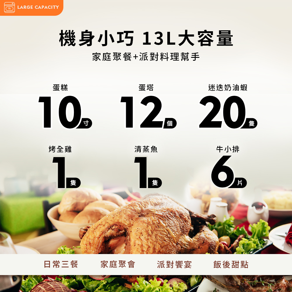 ● 小巧機身擁有13L大容量,全雞、10吋蛋糕都能輕鬆完成