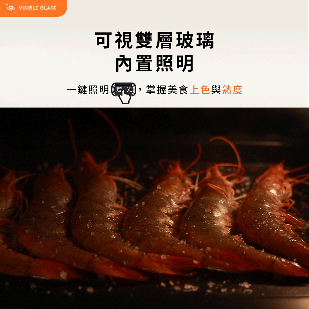 ● 特別設計可視雙層玻璃,清楚觀看料理過程,完美掌握熟度上色