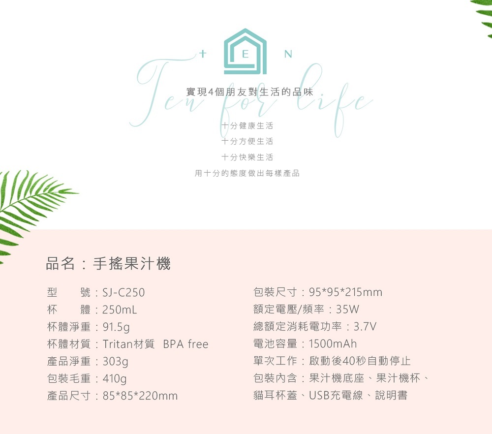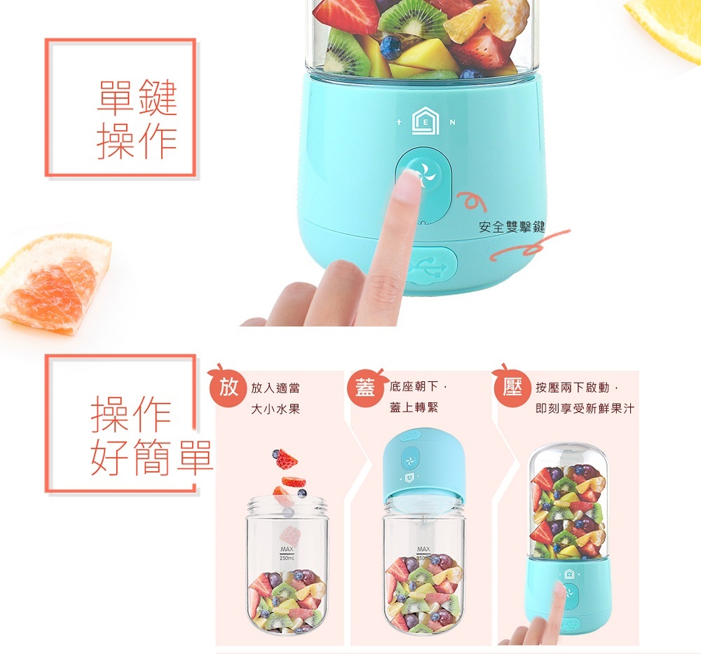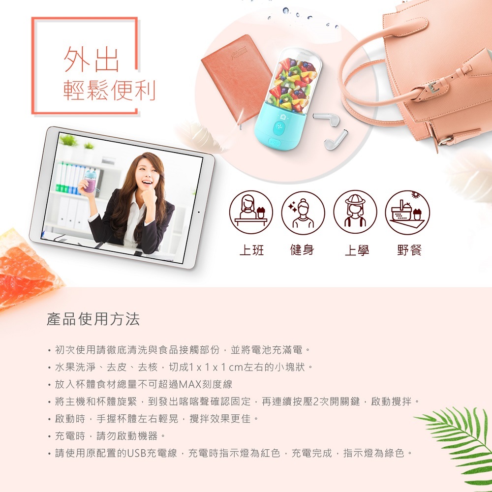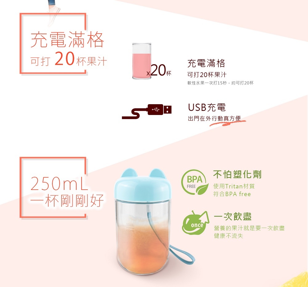 ◆無線鮮榨,USB充電重覆使用