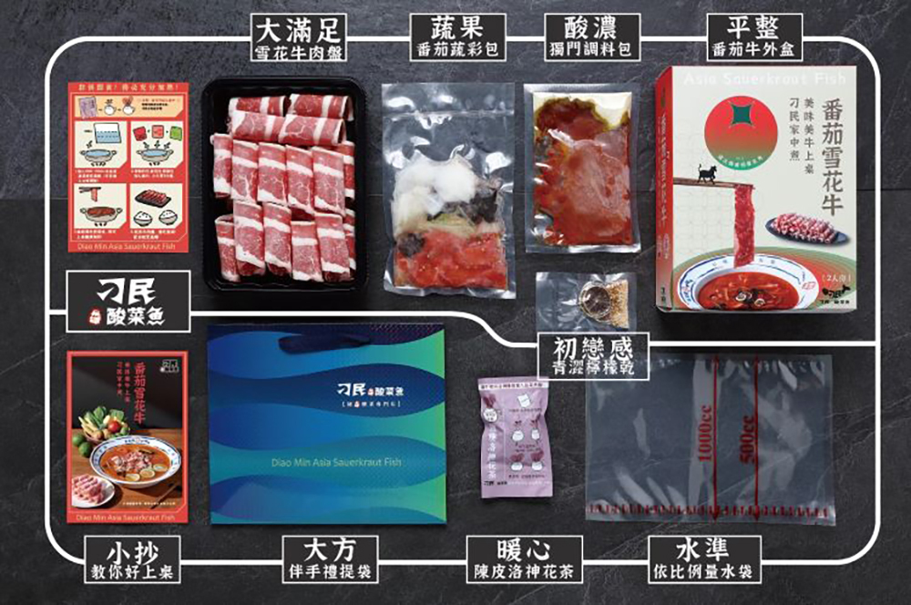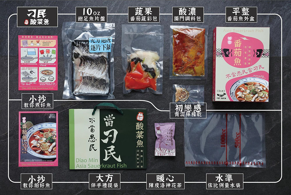 成分:烏魚魚片、牛番茄、番茄糊、芥花油、豬脂、料理米酒、麥芽糊精辛烯基丁二酸鈉澱粉、脂肪酸甘油脂、二氧化矽、混合濃縮生育醇、L-抗壞血酸棕櫚酸脂、蒜頭、麥纖皮、棕櫚油、紅蔥頭、玉米澱粉、L麩酸鈉、雞油、糖、雞肉、5次黃哈核昔磷酸二鈉、5烏哈核昔磷酸二鈉、洋蔥粉、檸檬酸、葵花油、香料、胺基乙酸、DL-胺基丙酸特砂、氧化納、碘酸鉀、芝麻、琥珀酸二鈉、檸檬酸鈉、L-天門冬酸鈉、蔗糖素、甘酸胺、月葉粉、改性澱粉、樹脂末、小麥麵粉、龍蝦精華(含有甲殼類動物)、全脂奶粉、母精華、調味劑、增味劑、色素、香料、穩定劑、水、釀造醋、香辛料、九層塔、洋香菜菜、白胡椒、青梅、檸檬、食品級冰醋酸、DL蘋果酸、醋酸、雲耳、洋蔥、芹菜、黑胡椒