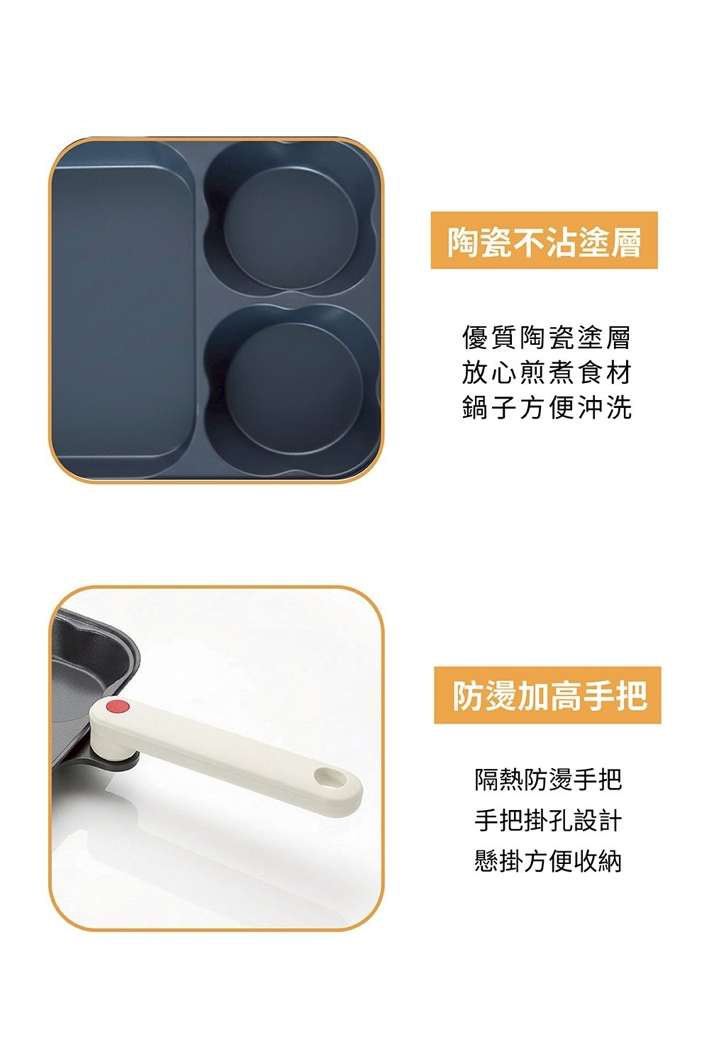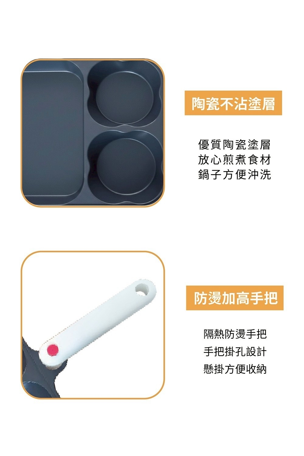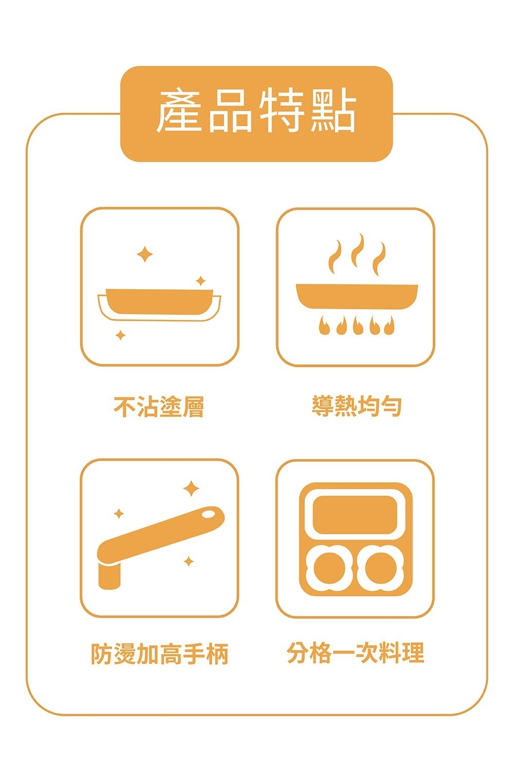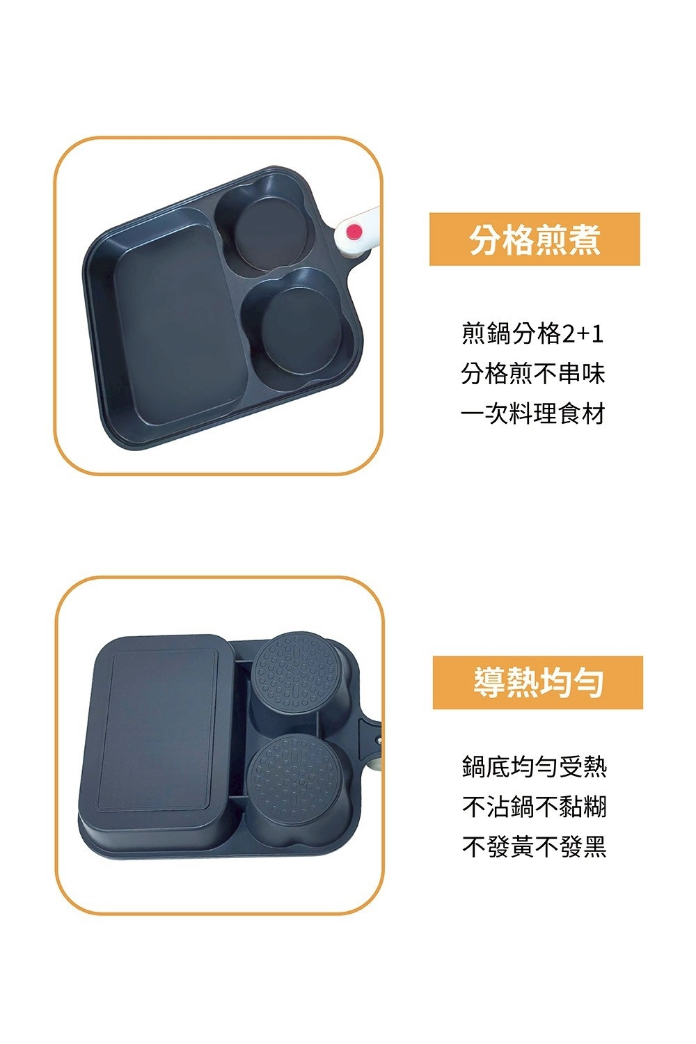 2+1分格鍋面,可同時料理多種食材,風味各自獨立