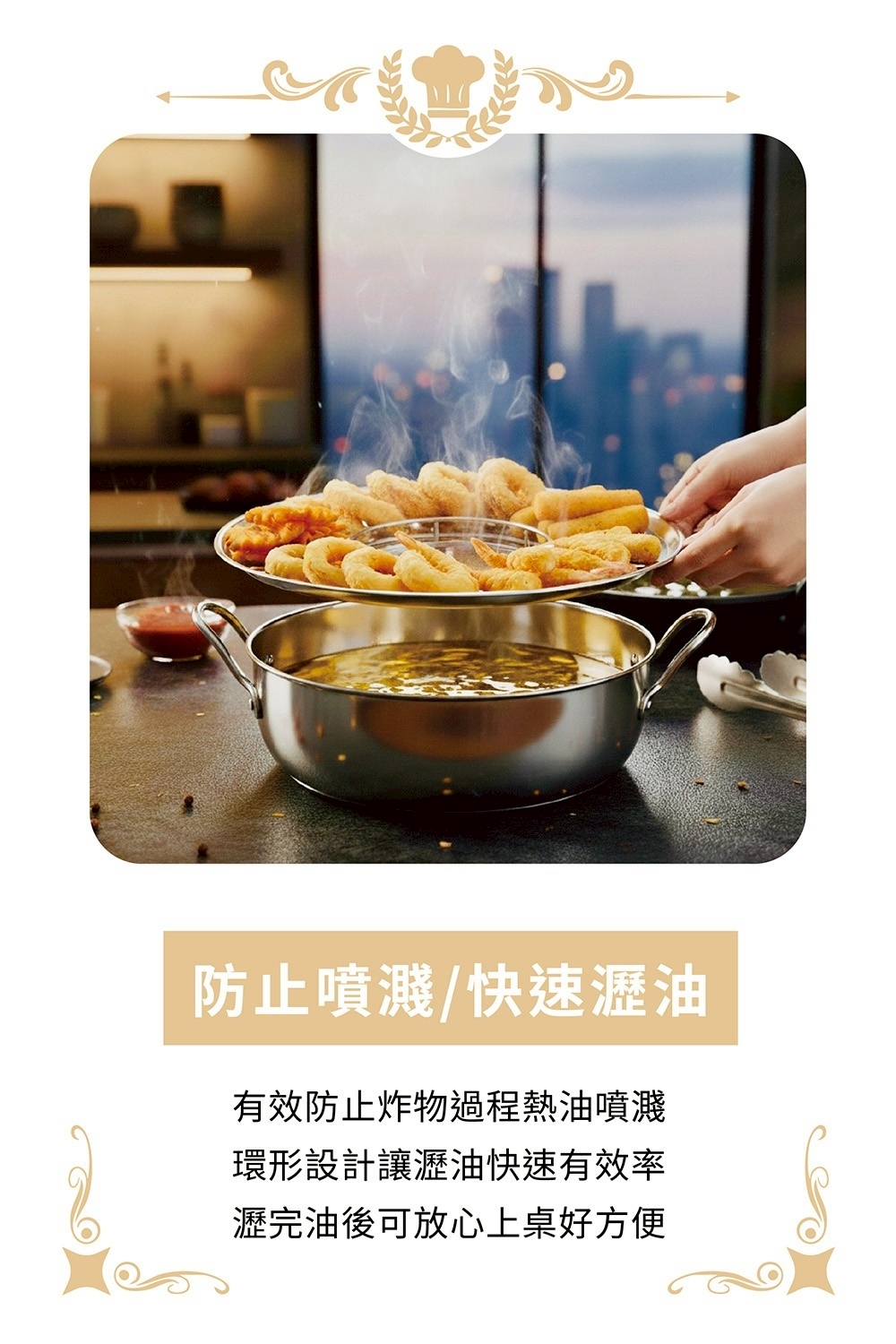快速瀝油:輕鬆濾掉多餘油脂,健康美味一次兼顧。