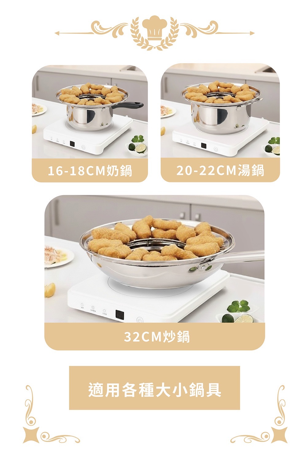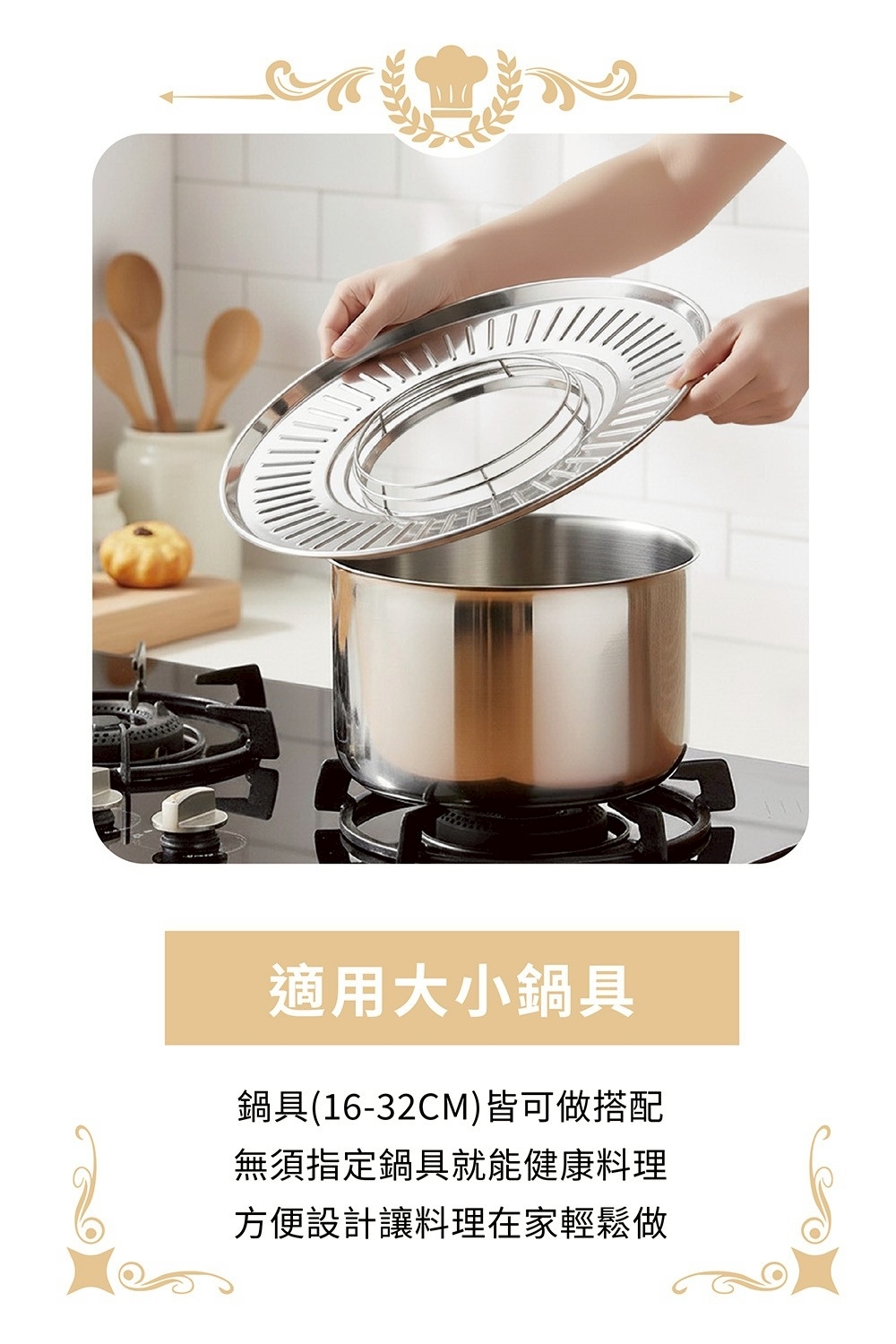 廣泛適用:16–32cm 炒鍋、湯鍋皆可搭配,超實用!