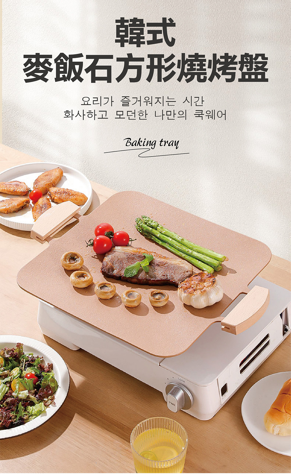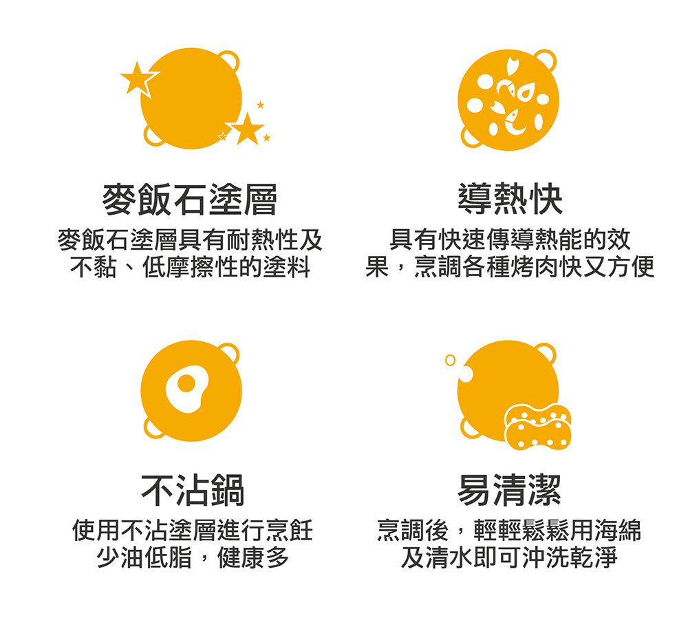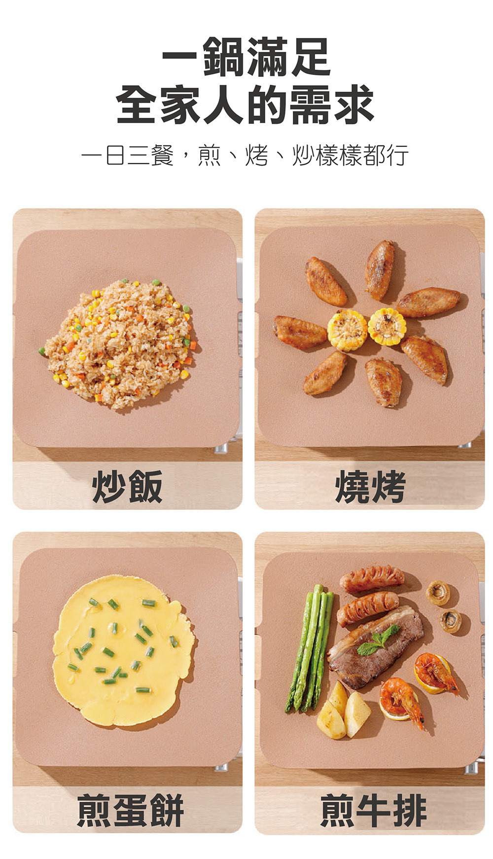 ●煎烤同步,麥飯石不沾,少油煎烤更健康,優質耐高溫不沾塗層,耐熱不黏易清洗。