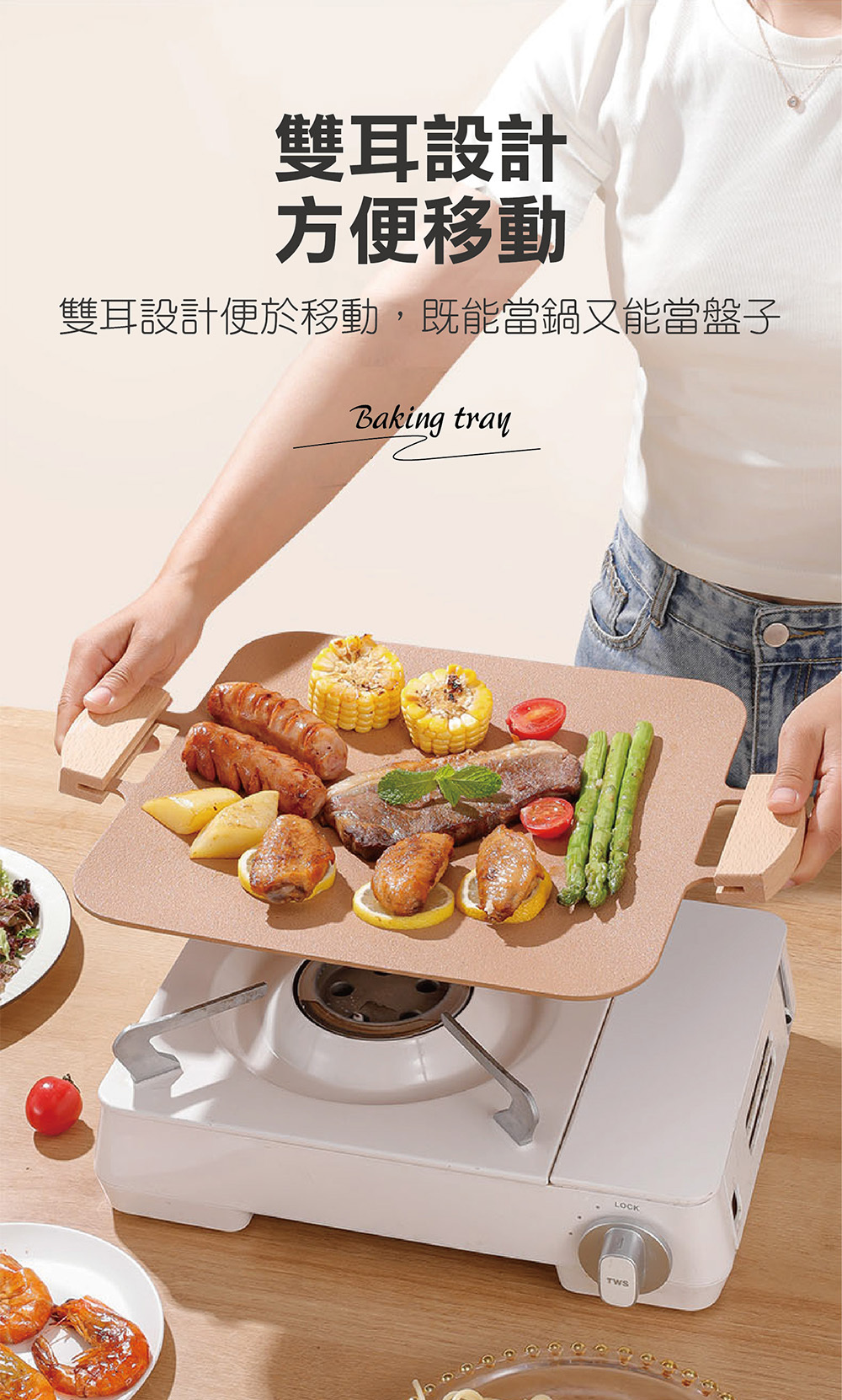 ●雙耳設計,方便移動,雙耳設易便於移動,既能當鍋又能當盤子。