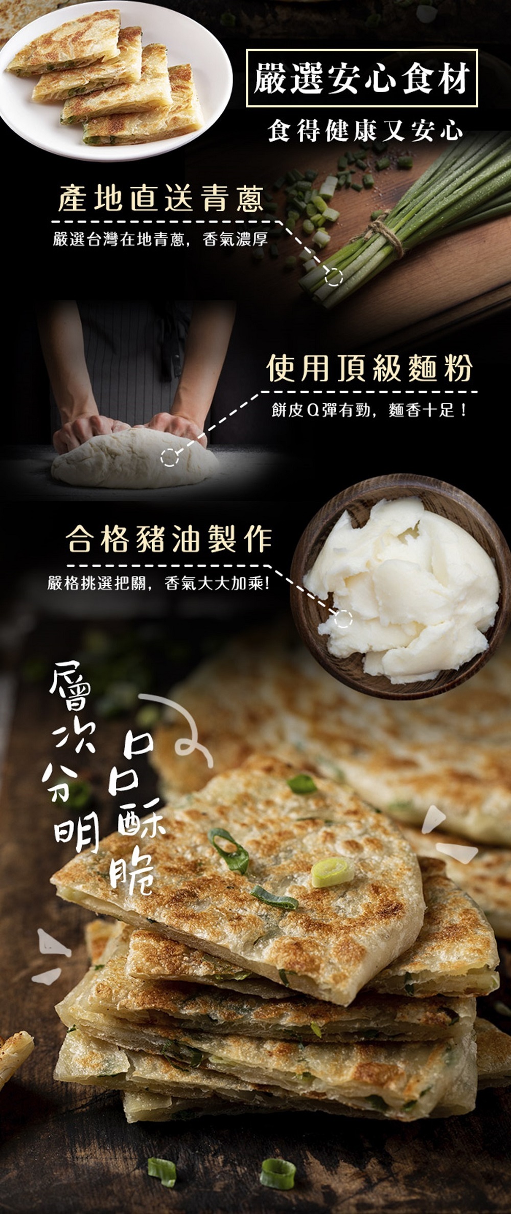.產地直送青蔥,手工揉入扎實麵糰,麵香濃厚,越嚼越香